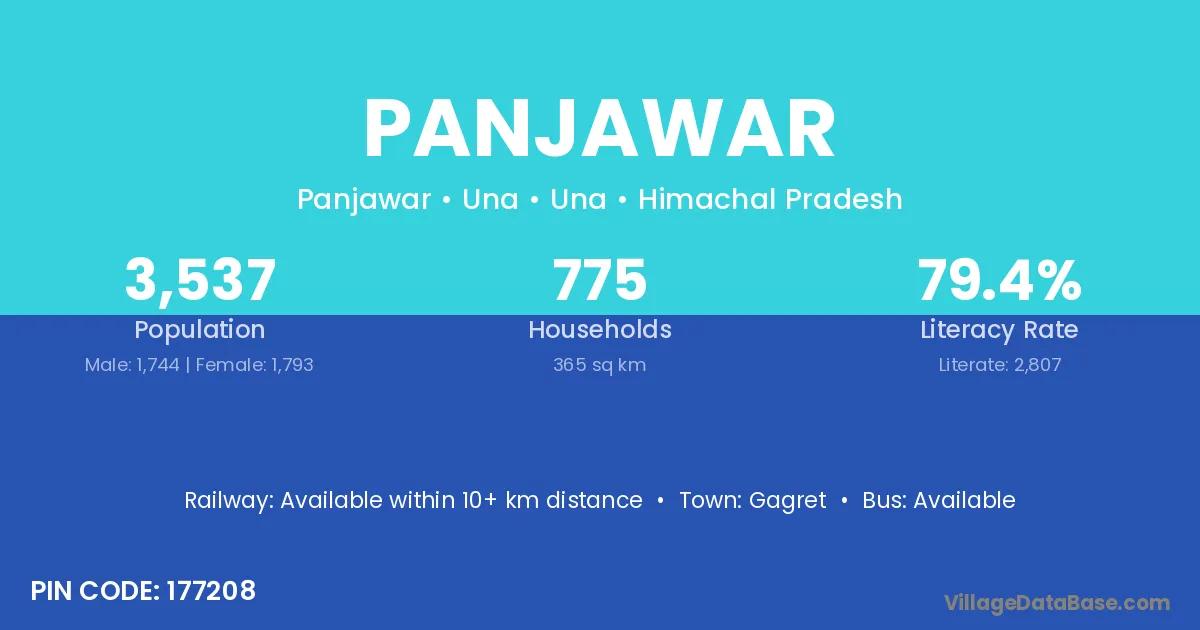 Panjawar village has a total population of 3,537 people, of which 1,744 are males and 1,793 are females.