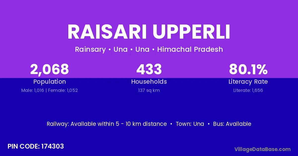Una is the nearest town to Raisari Upperli village for major economic activities