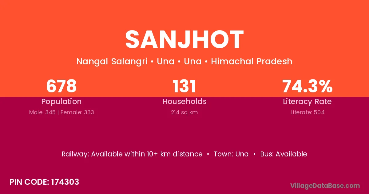 Sanjhot village has a total population of 678 people, of which 345 are males and 333 are females.