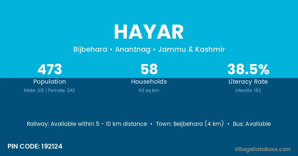 According to Census 2011 information, the village code of Hayar village is 192124.