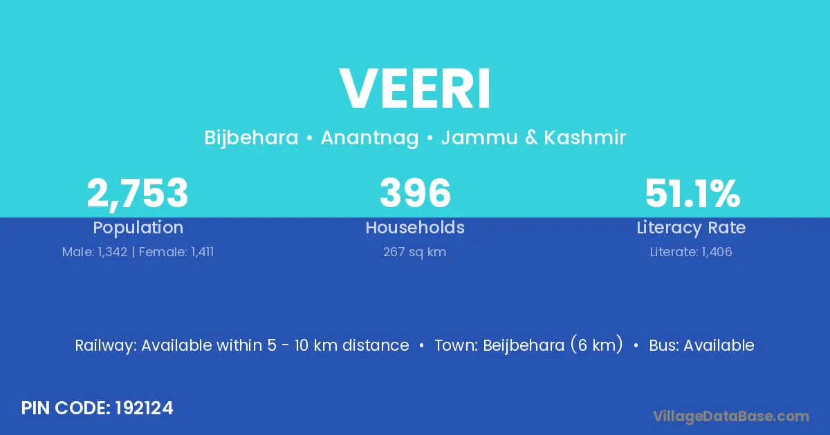 Beijbehara (6 km) is the nearest town to Veeri village for major economic activities and is located approximately 6 km away.