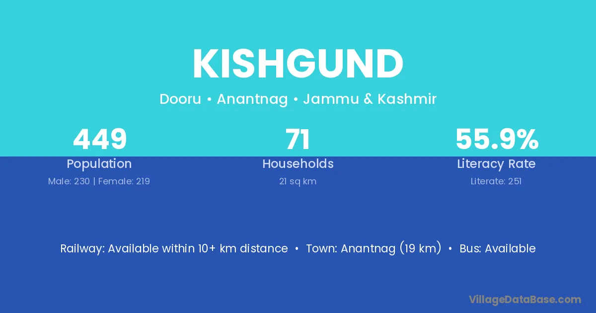 Anantnag (19 km) is the nearest town to Kishgund village for major economic activities and is located approximately 19 km away.