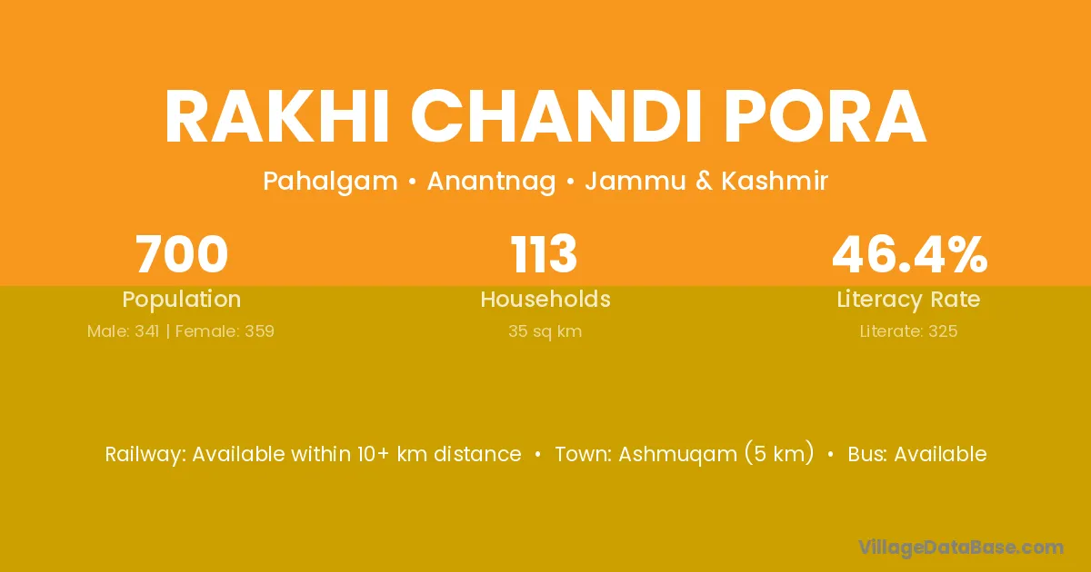 Ashmuqam (5 km) is the nearest town to Rakhi Chandi Pora village for major economic activities and is located approximately 5 km away.