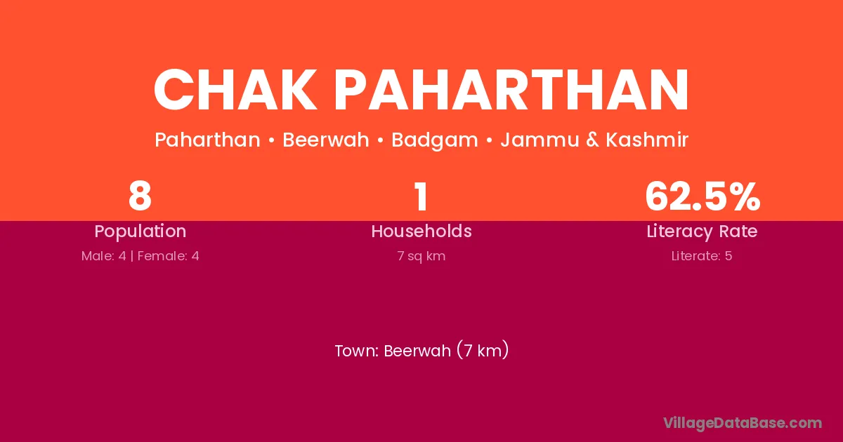Beerwah (7 km) is the nearest town to Chak Paharthan village for major economic activities and is located approximately 7 km away.