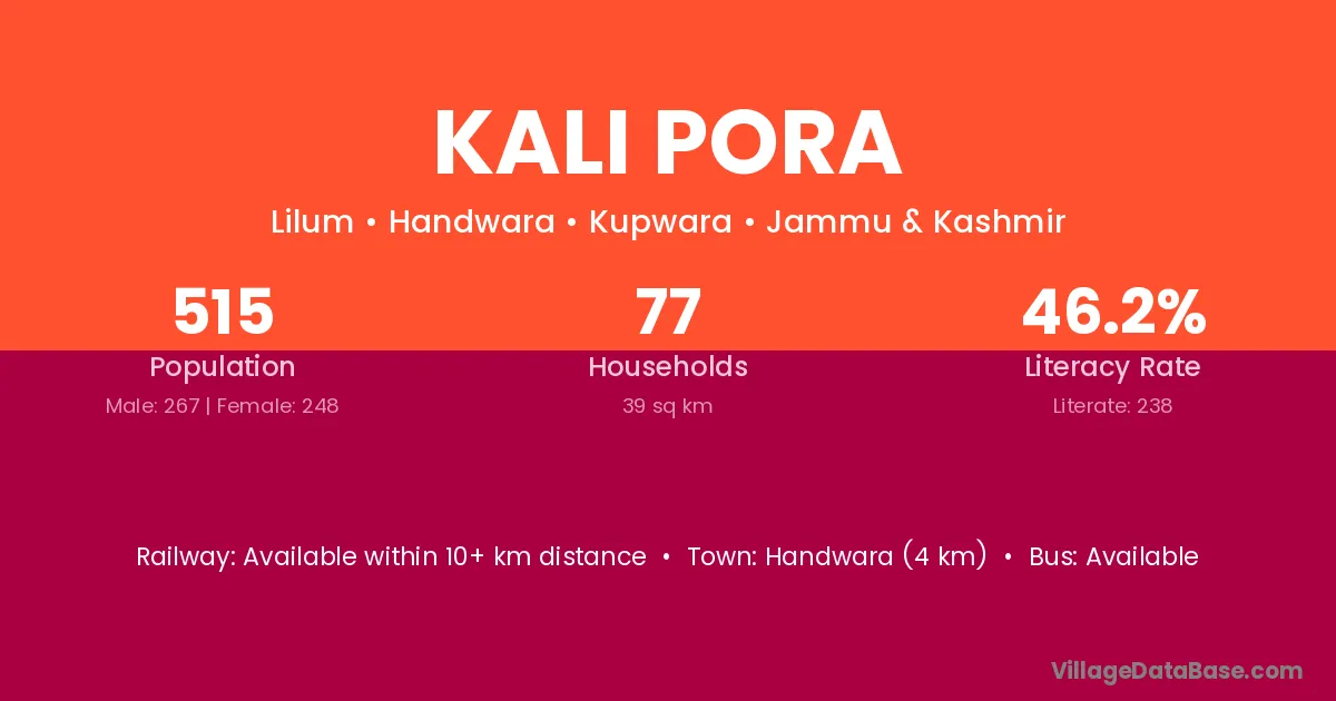 Beerwah (16 km) is the nearest town to Kali Pora village for major economic activities and is located approximately 16 km away.