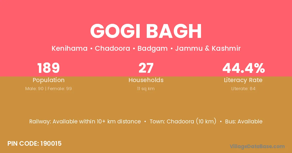 According to Census 2011 information, the village code of Gogi Bagh village is 190015.
