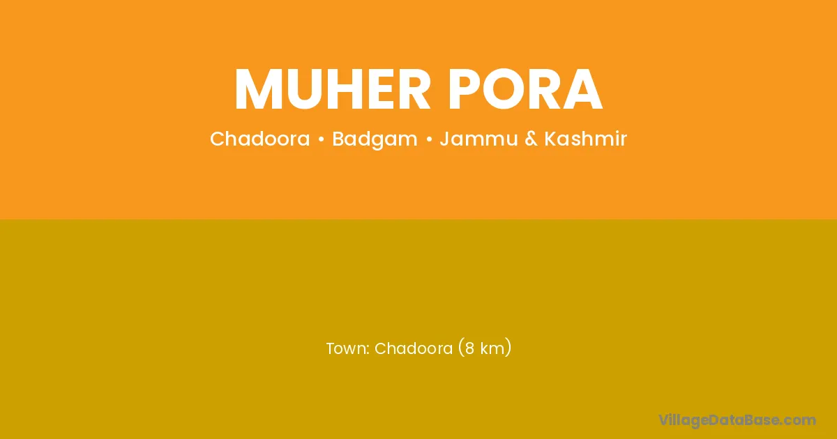 Chadoora (8 km) is the nearest town to Muher Pora village for major economic activities and is located approximately 8 km away.
