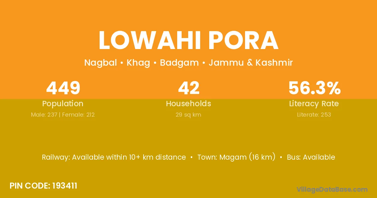 Lowahi Pora village is located in the Khag Tehsil of the Badgam district in Jammu & Kashmir .
