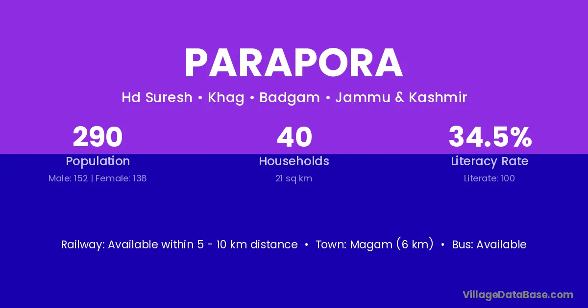 Magam (6 km) is the nearest town to Parapora village for major economic activities and is located approximately 6 km away.