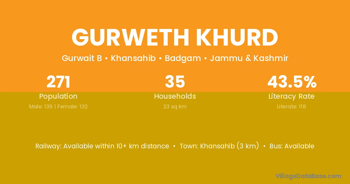 Gurweth Khurd village has a total population of 271 people, of which 139 are males and 132 are females.