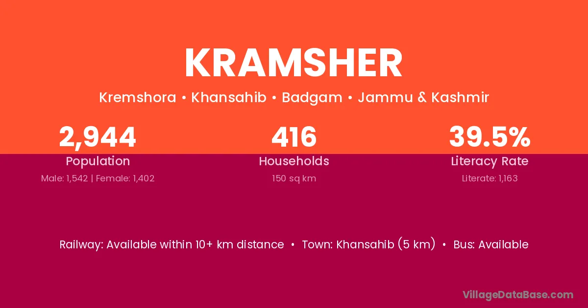 Khansahib (5 km) is the nearest town to Kramsher village for major economic activities and is located approximately 5 km away.