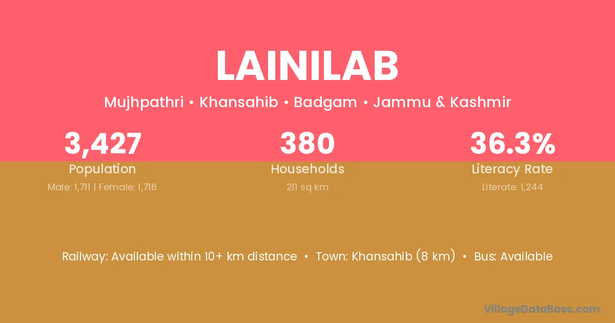Khansahib (8 km) is the nearest town to Lainilab village for major economic activities and is located approximately 8 km away.