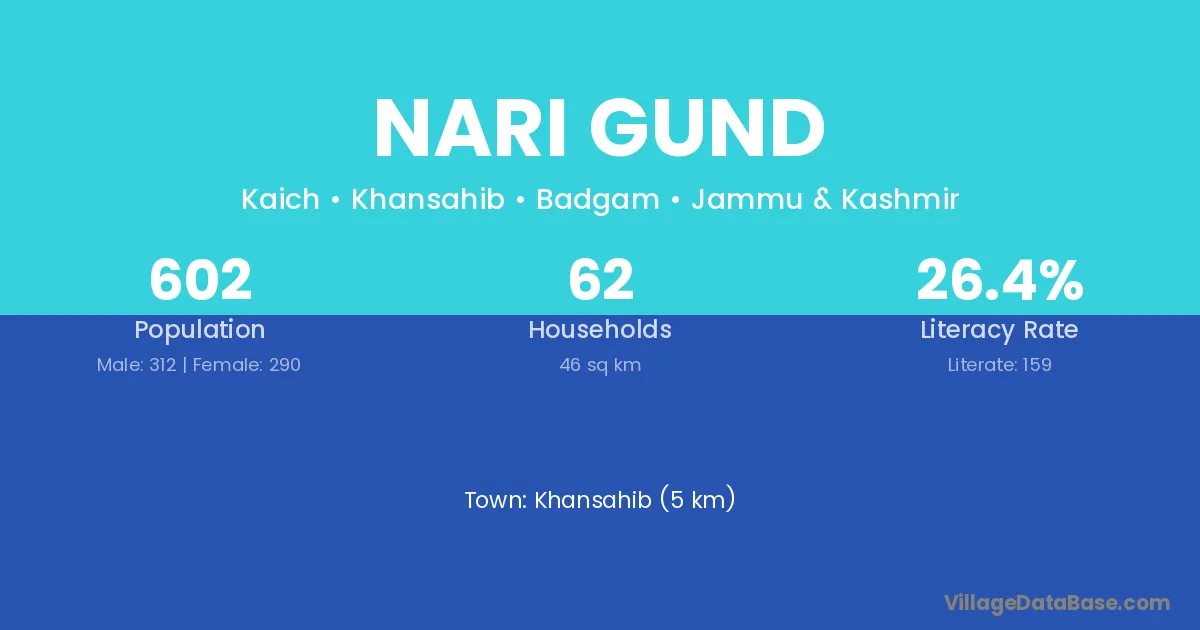 Nari Gund village has a total population of 602 people, of which 312 are males and 290 are females.