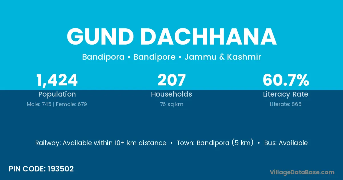 Bandipora (5 km) is the nearest town to Gund Dachhana village for major economic activities and is located approximately 5 km away.