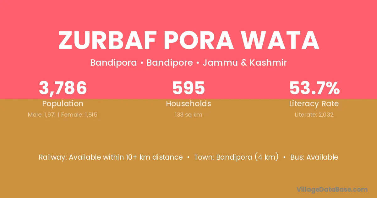 Bandipora (4 km) is the nearest town to Zurbaf Pora Wata village for major economic activities and is located approximately 4 km away.