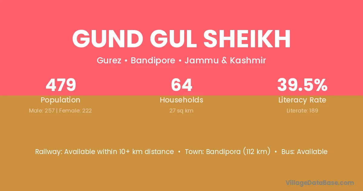 Gund Gul Sheikh village has a total population of 479 people, of which 257 are males and 222 are females.