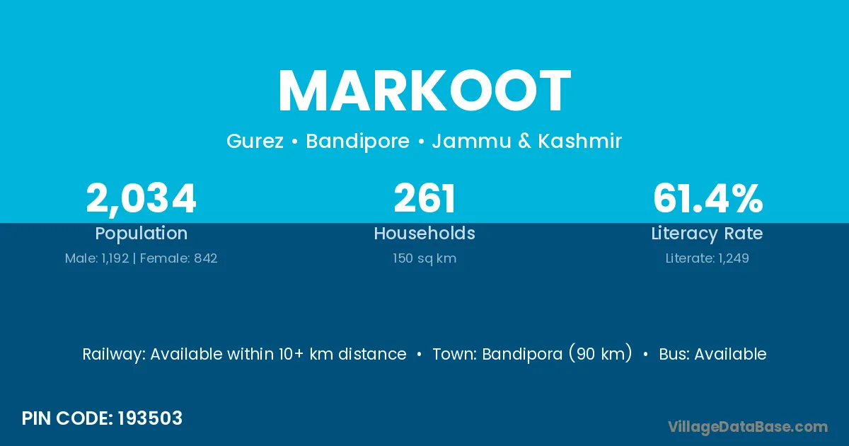 Bandipora (90 km) is the nearest town to Markoot village for major economic activities and is located approximately 90 km away.