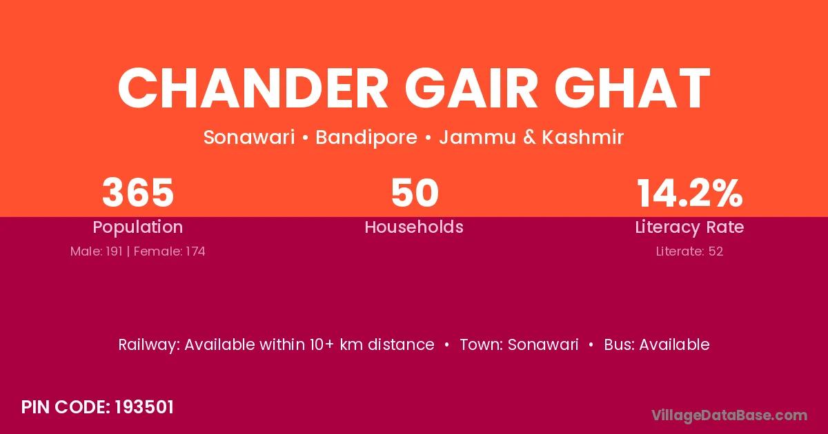 Chander Gair Ghat village has a total population of 365 people, of which 191 are males and 174 are females.