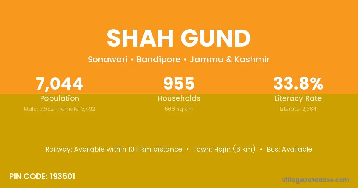 Hajin (6 km) is the nearest town to Shah Gund village for major economic activities and is located approximately 6 km away.