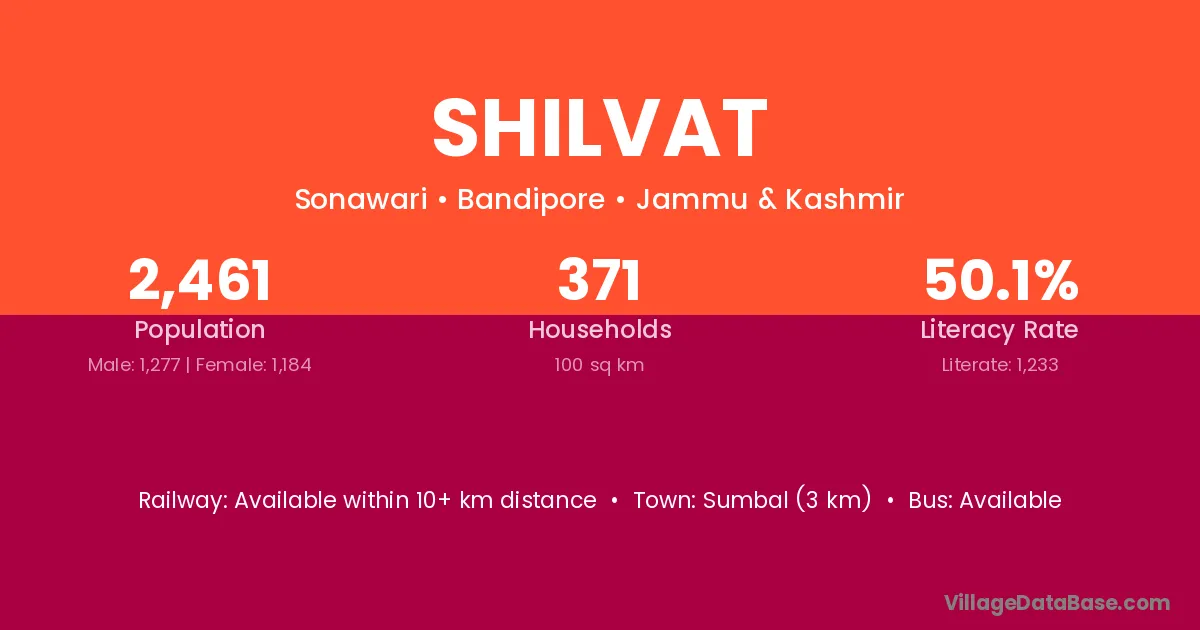 Sumbal (3 km) is the nearest town to Shilvat village for major economic activities and is located approximately 3 km away.