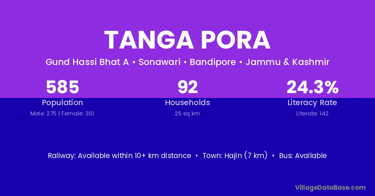 Hajin (7 km) is the nearest town to Tanga Pora village for major economic activities and is located approximately 7 km away.