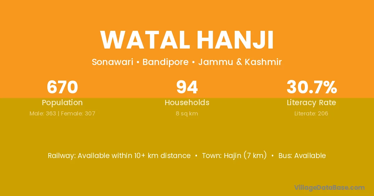 Hajin (7 km) is the nearest town to Watal Hanji village for major economic activities and is located approximately 7 km away.