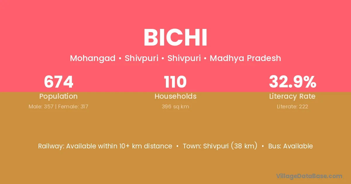 The literacy rate of Bichi village is 32.49%. Male literacy stands at 42.13% and female literacy at 20.27%.