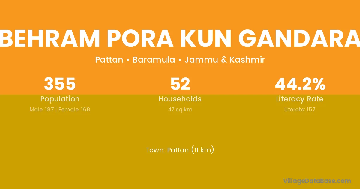 Behram Pora Kun Gandara village has a total population of 355 people, of which 187 are males and 168 are females.