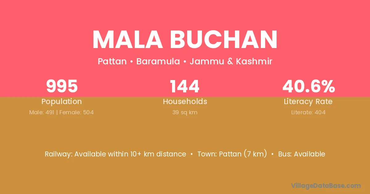 Mala Buchan village has a total population of 995 people, of which 491 are males and 504 are females.