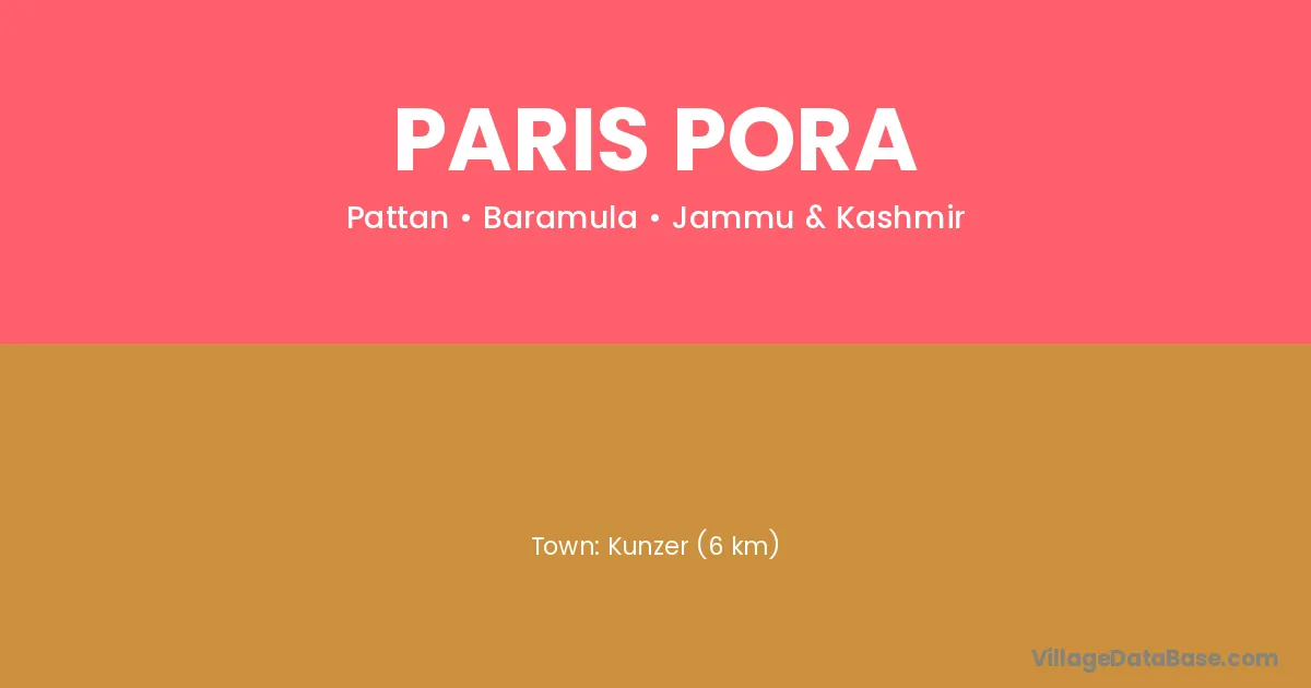 Kunzer (6 km) is the nearest town to Paris Pora village for major economic activities and is located approximately 6 km away.