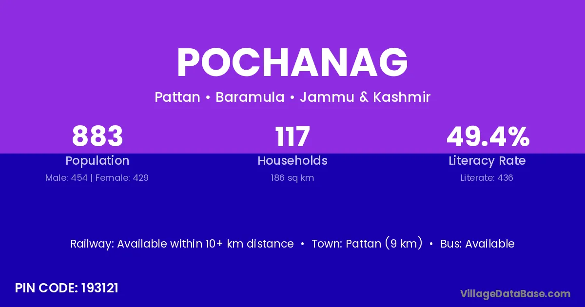 Pattan (9 km) is the nearest town to Pochanag village for major economic activities and is located approximately 9 km away.