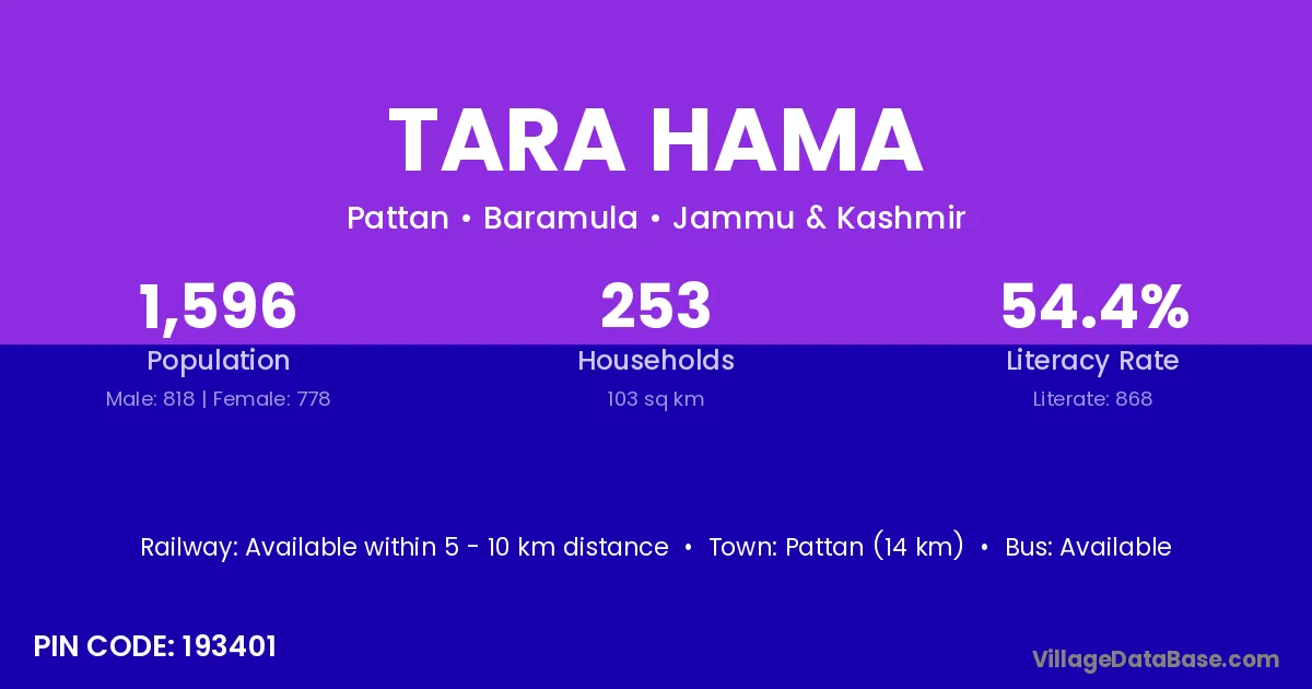 According to Census 2011 information, the village code of Tara Hama village is 193401.