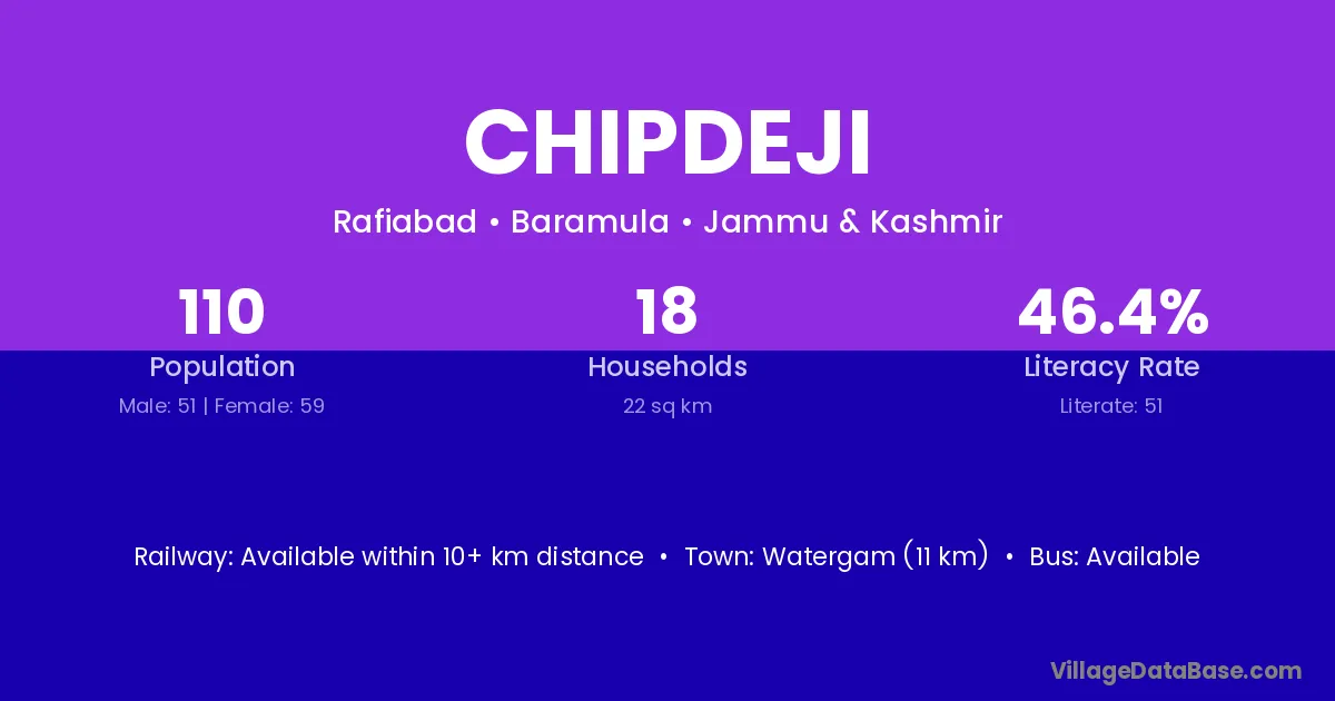 Chipdeji village has a total population of 110 people, of which 51 are males and 59 are females.