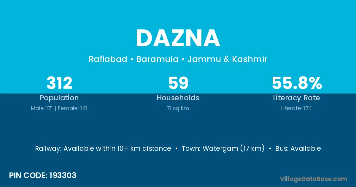 According to Census 2011 information, the village code of Dazna village is 193303.