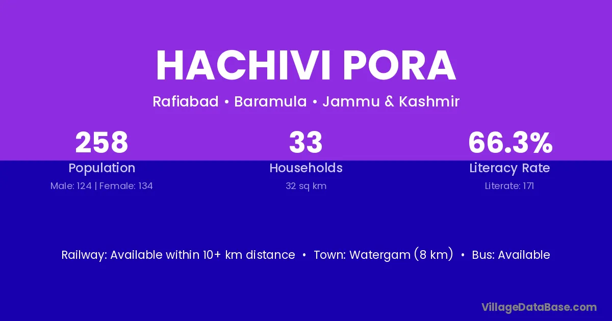 Watergam (8 km) is the nearest town to Hachivi Pora village for major economic activities and is located approximately 8 km away.