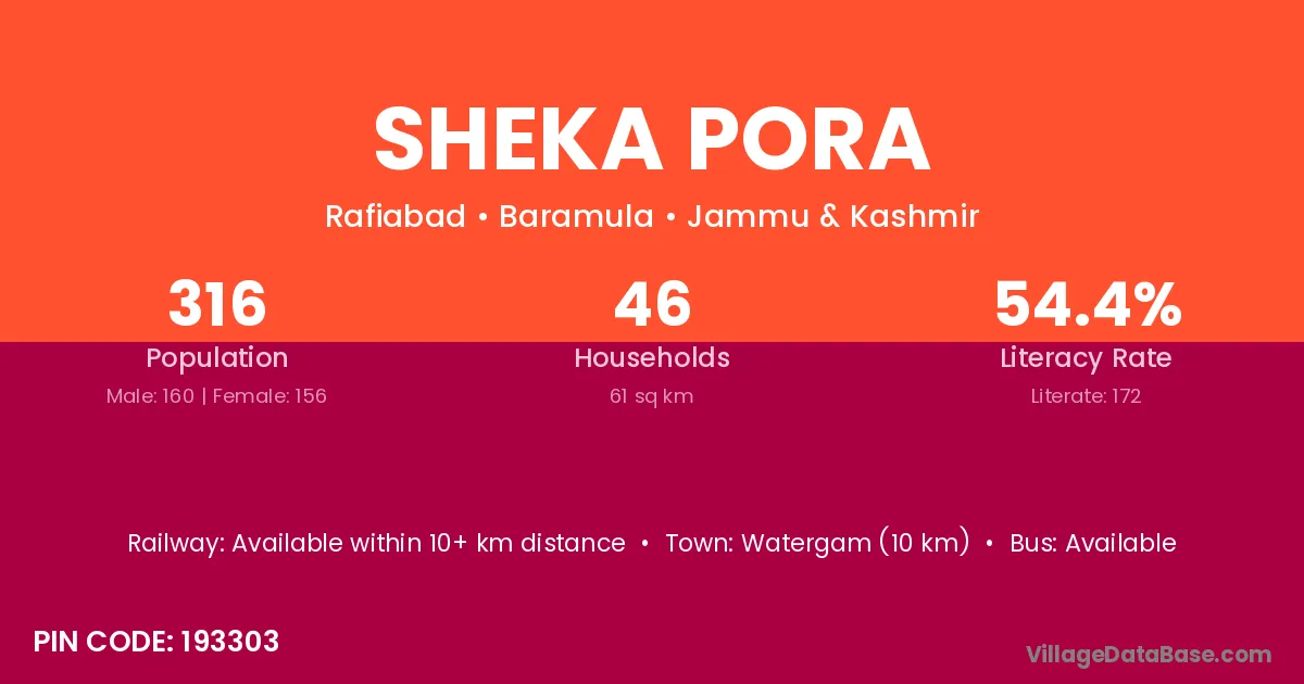 Sheka Pora village has a total population of 316 people, of which 160 are males and 156 are females.