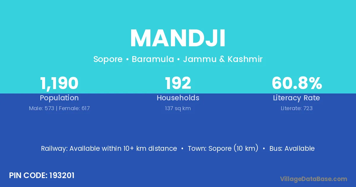 Sopore (10 km) is the nearest town to Mandji village for major economic activities and is located approximately 10 km away.