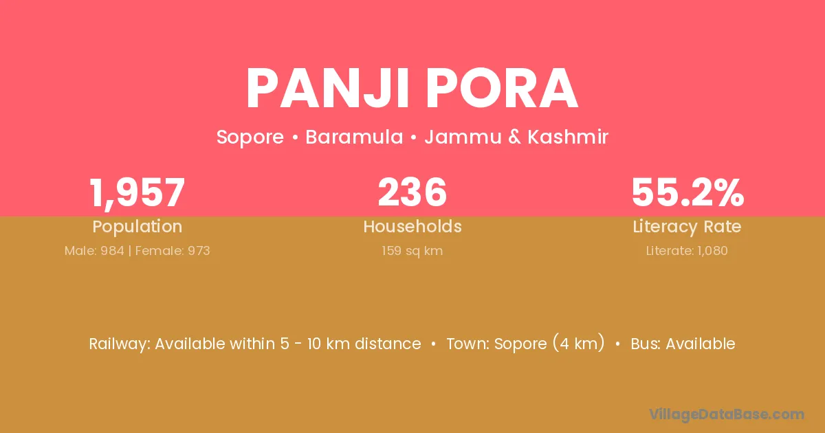 Sopore (4 km) is the nearest town to Panji Pora village for major economic activities and is located approximately 4 km away.
