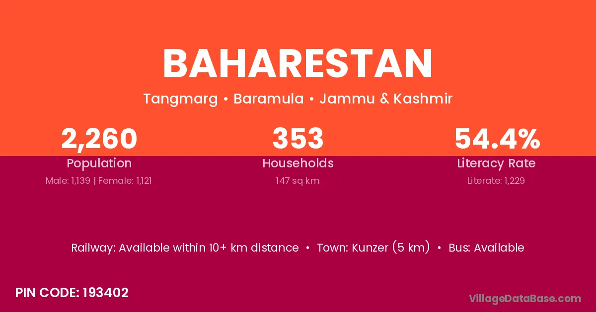 Baharestan village is located in the Tangmarg Tehsil of the Baramula district in Jammu & Kashmir .