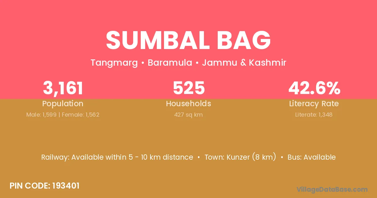 Kunzer (8 km) is the nearest town to Sumbal Bag village for major economic activities and is located approximately 8 km away.
