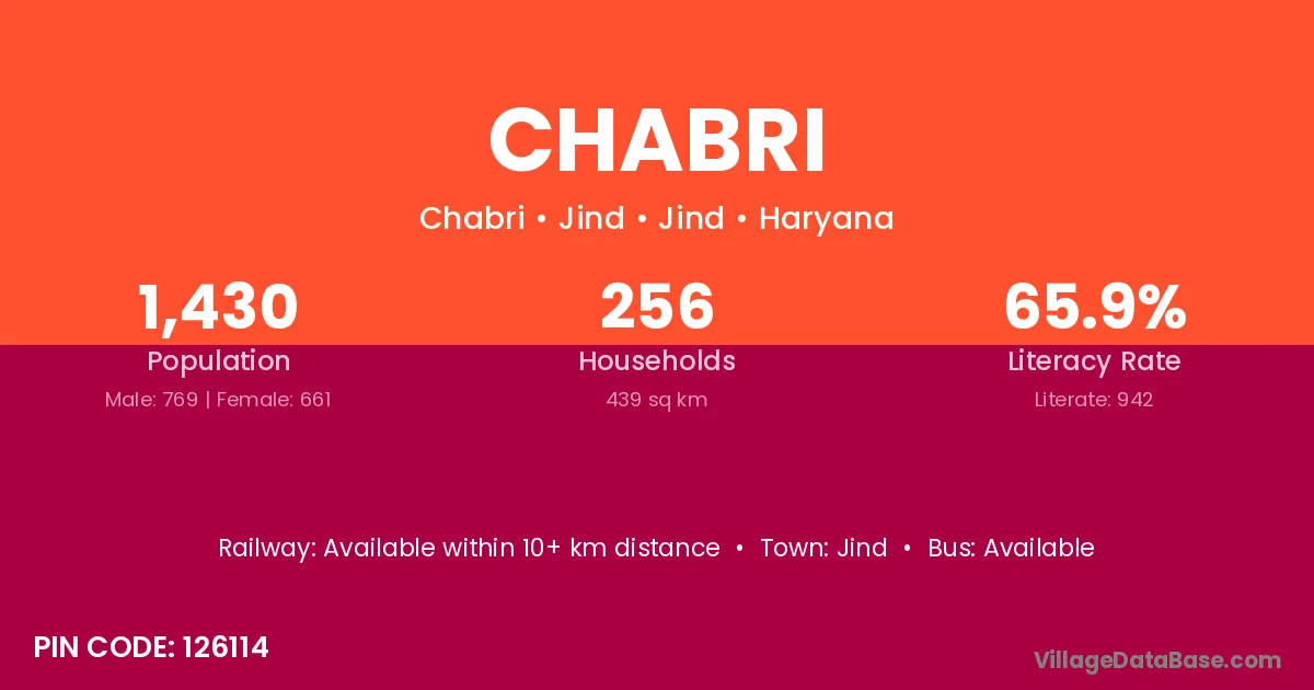 According to Census 2011 information, the village code of Chabri village is 182221.