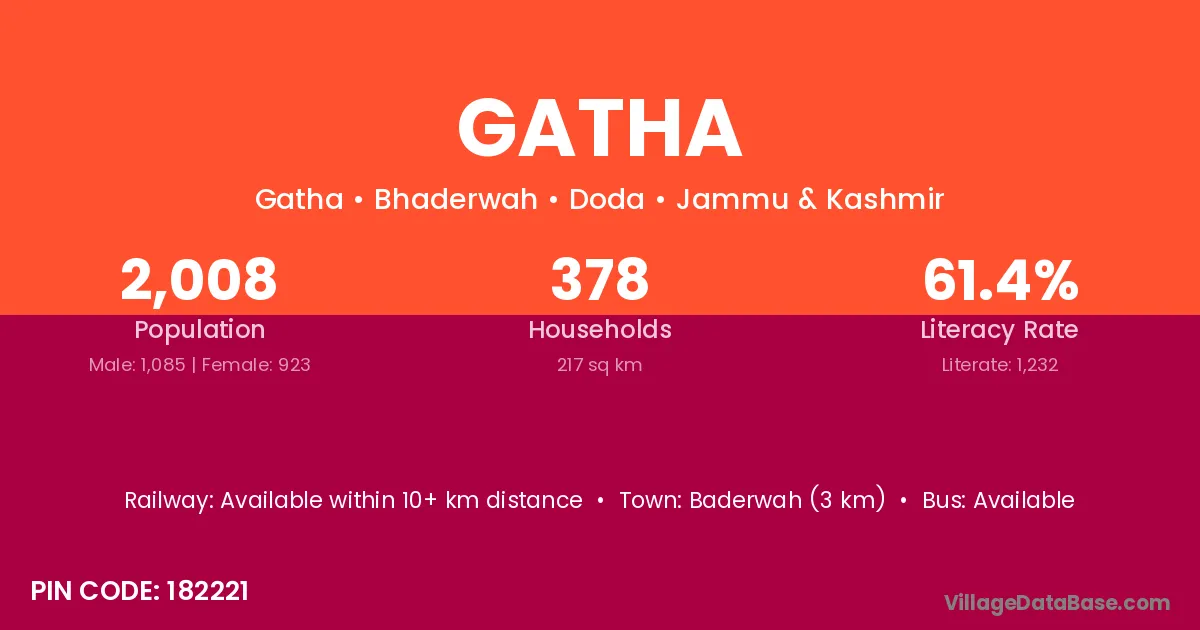 Baderwah (3 km) is the nearest town to Gatha village for major economic activities and is located approximately 3 km away.
