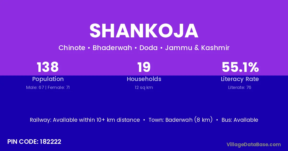 Baderwah (8 km) is the nearest town to Shankoja village for major economic activities and is located approximately 8 km away.