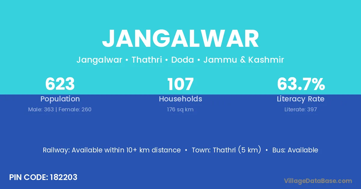 Thathri (5 km) is the nearest town to Jangalwar village for major economic activities and is located approximately 5 km away.