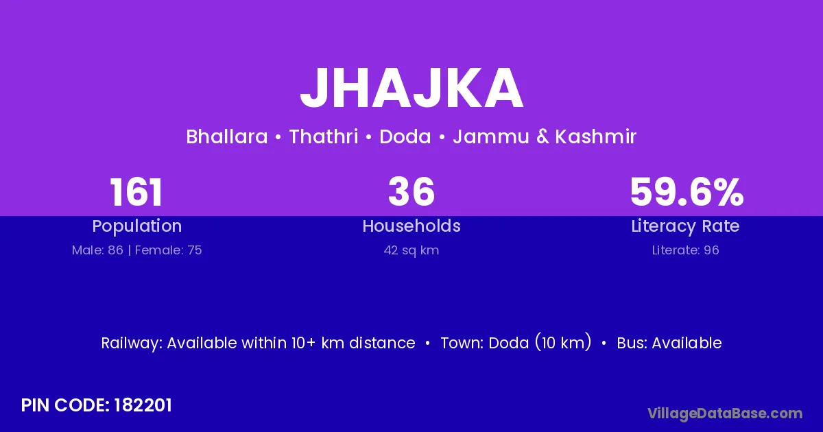 Doda (10 km) is the nearest town to Jhajka village for major economic activities and is located approximately 10 km away.