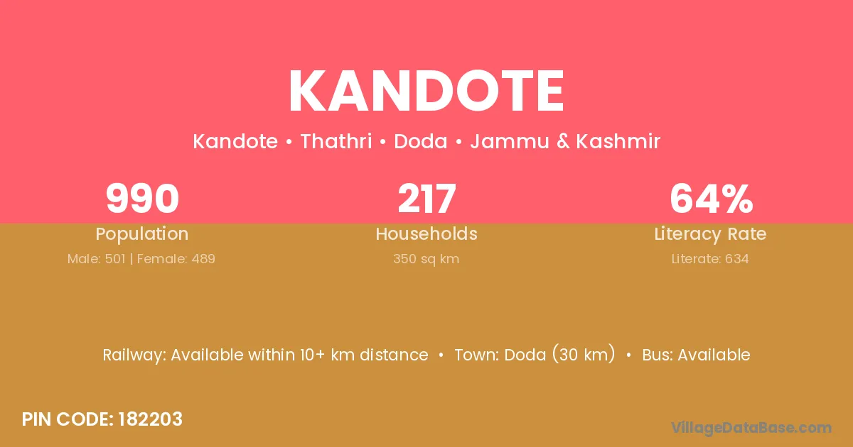 Kandote village has a total population of 990 people, of which 501 are males and 489 are females.