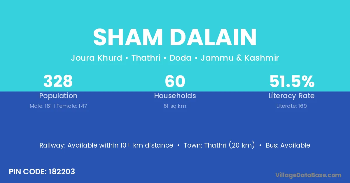 Thathri (20 km) is the nearest town to Sham Dalain village for major economic activities and is located approximately 20 km away.