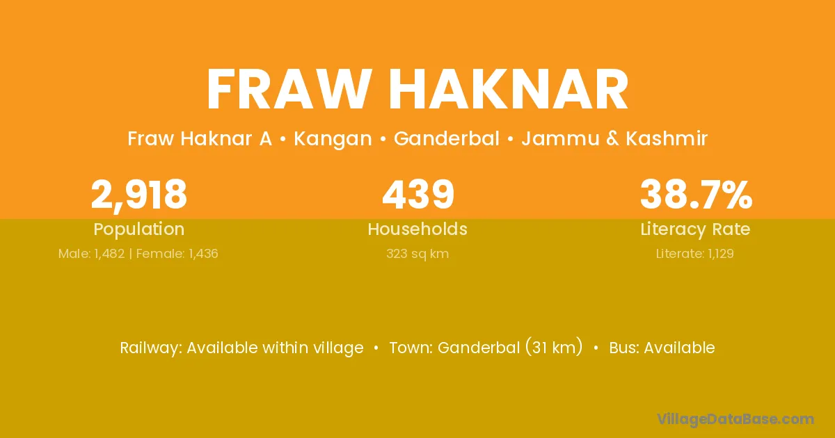 Ganderbal (31 km) is the nearest town to Fraw Haknar village for major economic activities and is located approximately 31 km away.