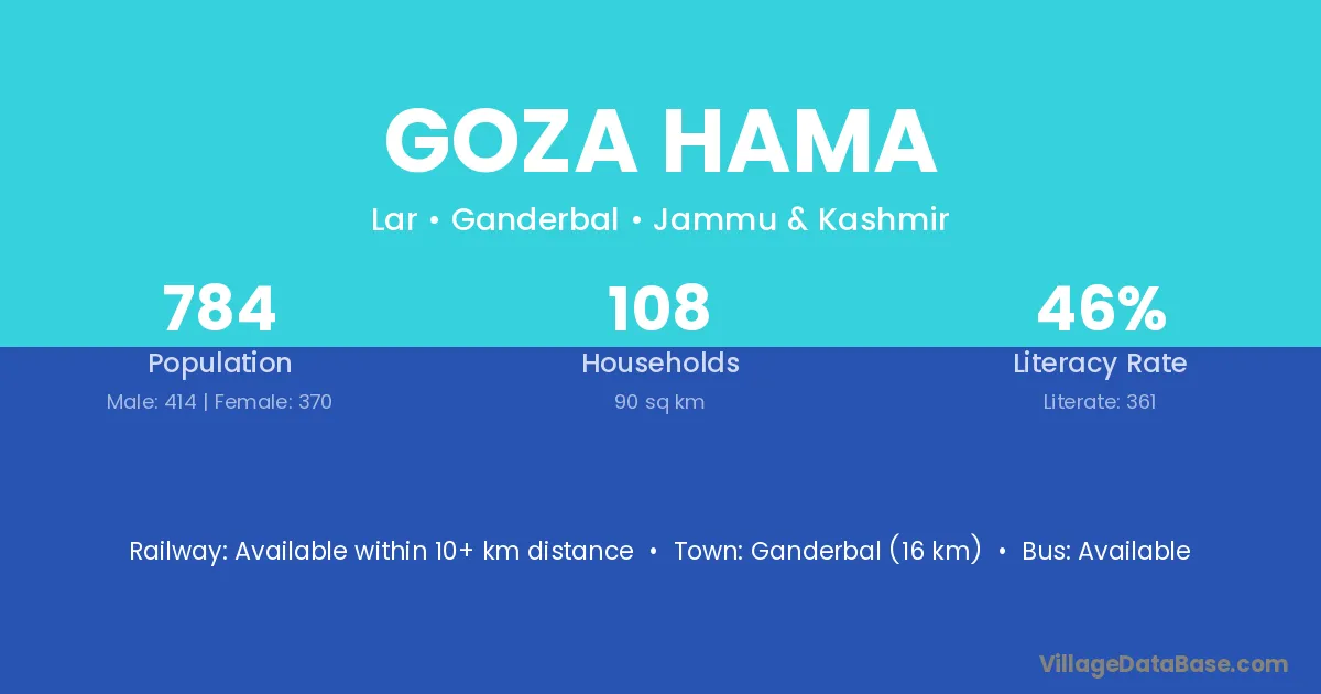 Ganderbal (16 km) is the nearest town to Goza Hama village for major economic activities and is located approximately 16 km away.