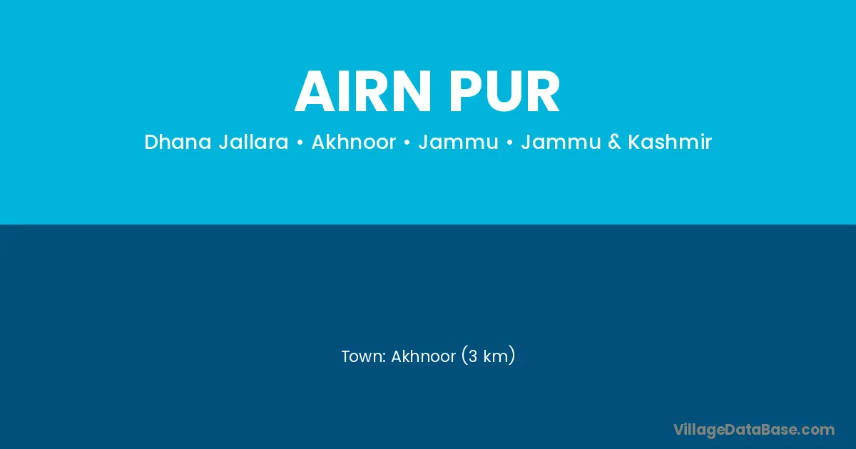 Akhnoor (3 km) is the nearest town to Airn Pur village for major economic activities and is located approximately 3 km away.